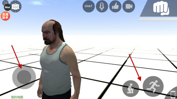 4、在场景中,通过左边的按钮操控角色前进或者后退,右边则是蹲下和跳跃。