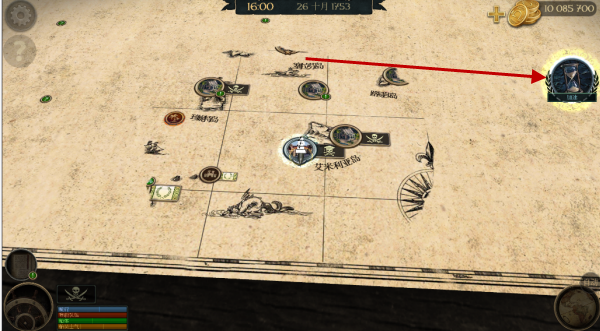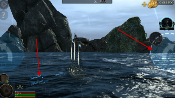 4、海水中的图标代表的风向,所以我们需要点右侧的按键来顺风航行!