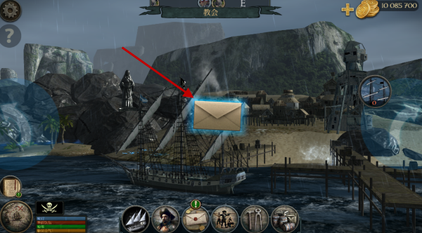 2、点击进入到一座港口后,我们可以点击屏幕中央的信封图标!