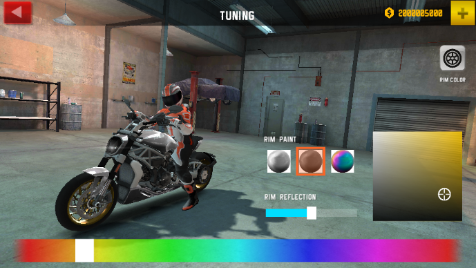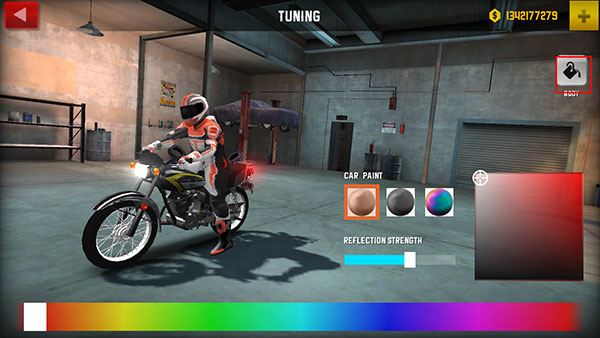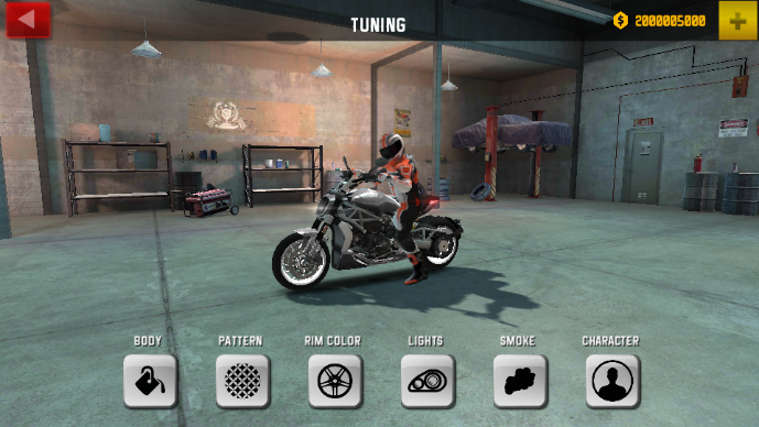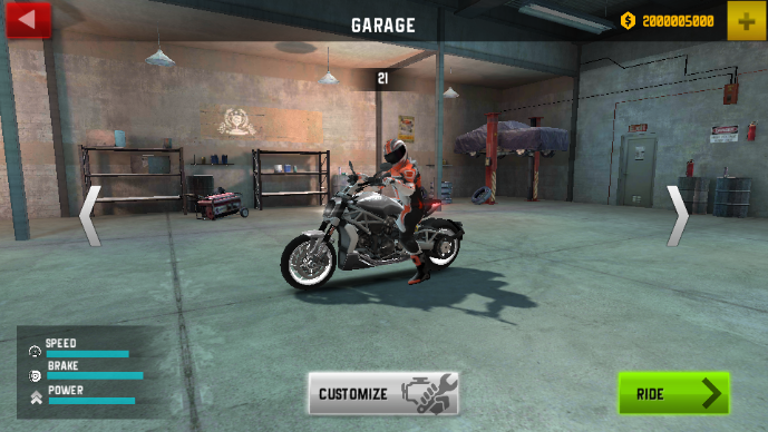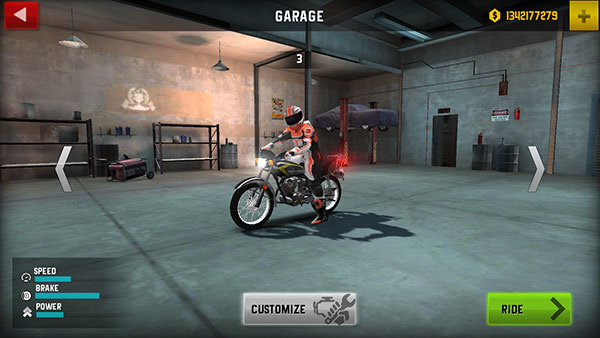 自由改装系统:支持对摩托车外观涂装、轮胎、引擎等部件进行个性化改装,打造独一无二的专属座驾。