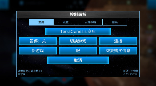 2、来到星球控制面板,这里有游戏主要的设置等等