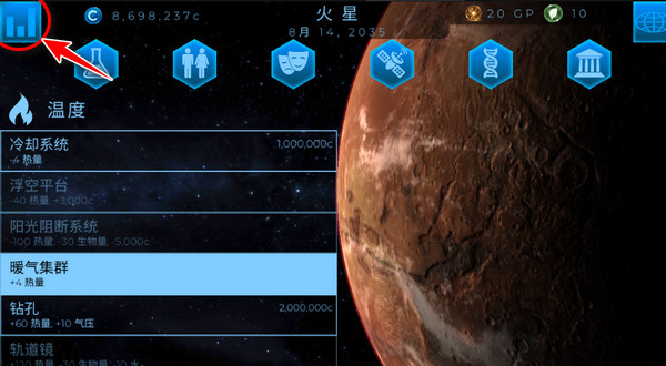 10、点击主界面左上角的图标,可以查看详细的星球数据