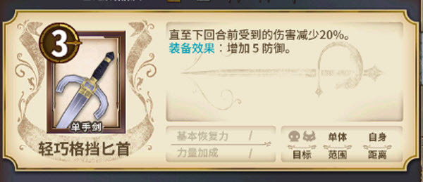 4、轻巧格挡匕首:下回合开始前减伤。