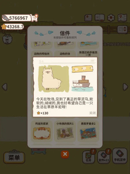 2、新西兰的手账另一页:3级向日葵+3级红玫瑰+3级蓝风铃+解锁羊驼。