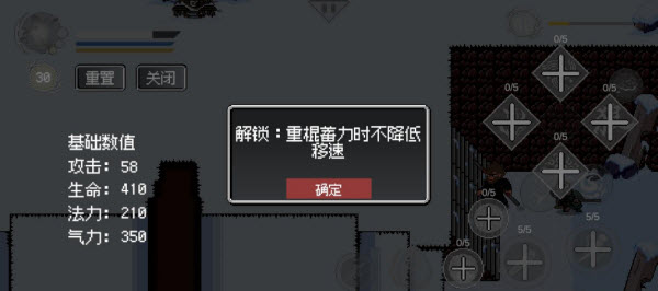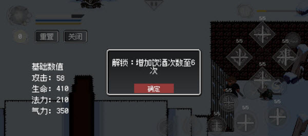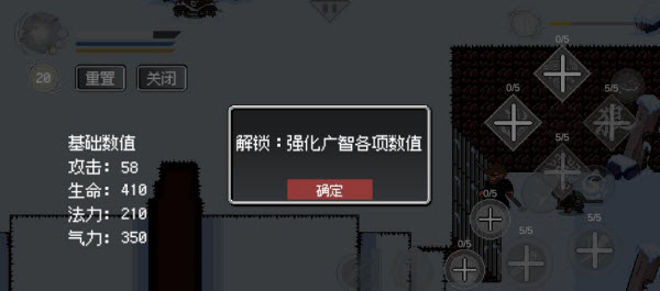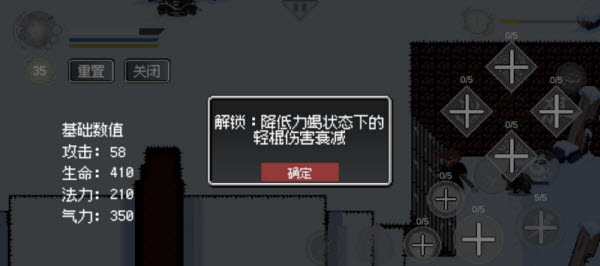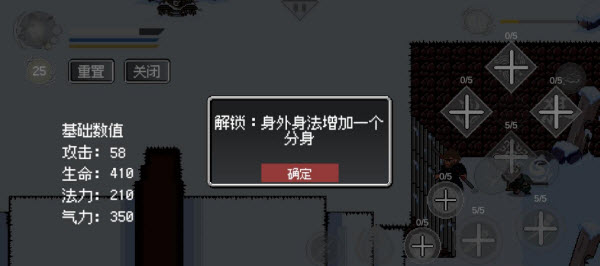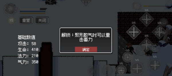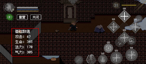 3、打开修行还可查看当前的基础数值,左上角的数字代表你还剩多少技能点,如果觉得自己升级错了还可以重置技能点,重置技能点后技能点不会消失,可以再选择升级哪个技能。
