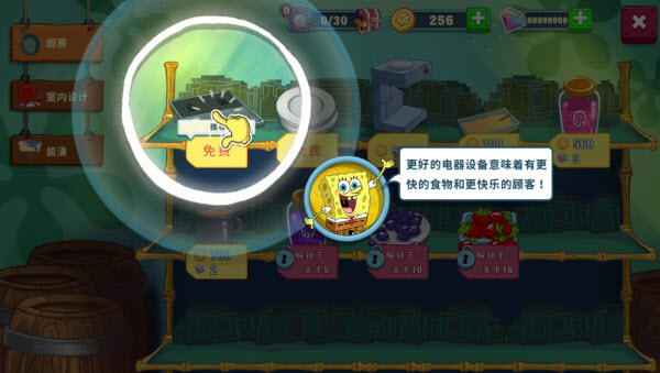 海绵宝宝大闹蟹堡王汉化版怎样升级器具