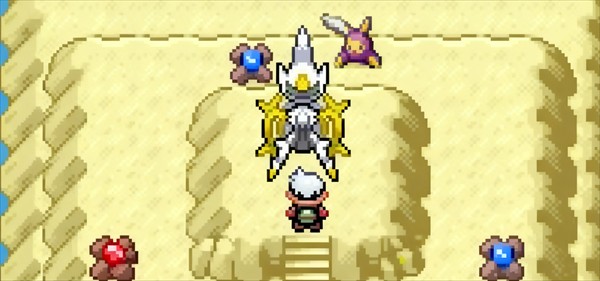 9、在里面可以看到创世神阿尔宙斯,和创世神战斗(不可使用大师球),几率还是比较大的就可以收复精灵