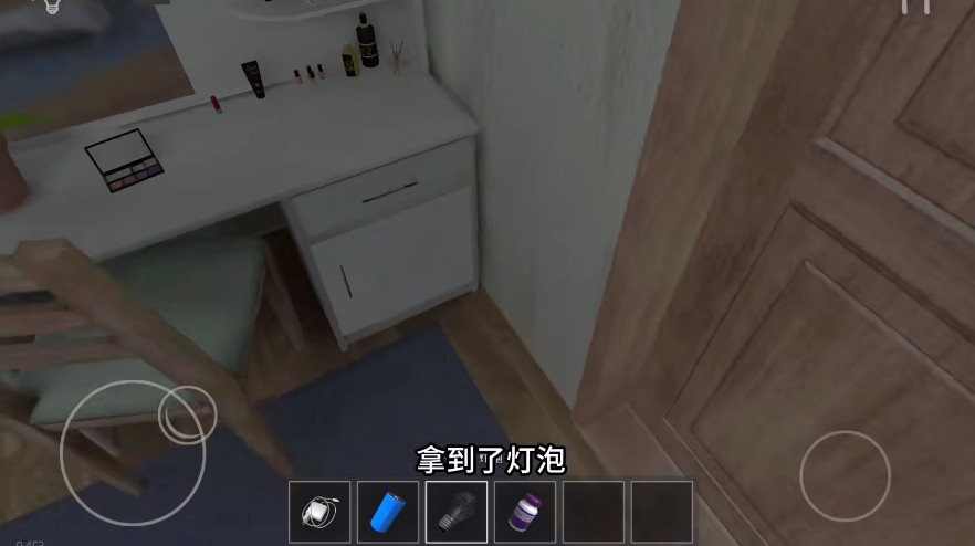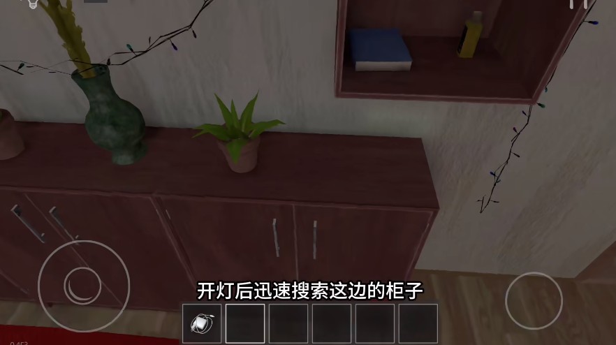5、等老爸进房间的时候,迅速搜寻这个房间,在这个柜子里会找到一节电池,在电视机下面柜子里找到螺丝刀。
