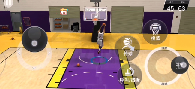 后撤投篮:就是在停止运球之前先向后撤一步再进行投篮的动作,可以拉开和防守队员的距离提高命中率,广泛用在外线投篮和三分球上。我们在游戏中面向篮筐运球时,找到投球的点位,向篮筐反方向推动左手的移动摇杆,同时轻点投篮键,做出后撤步的动作之后再按住投篮就可以完成。