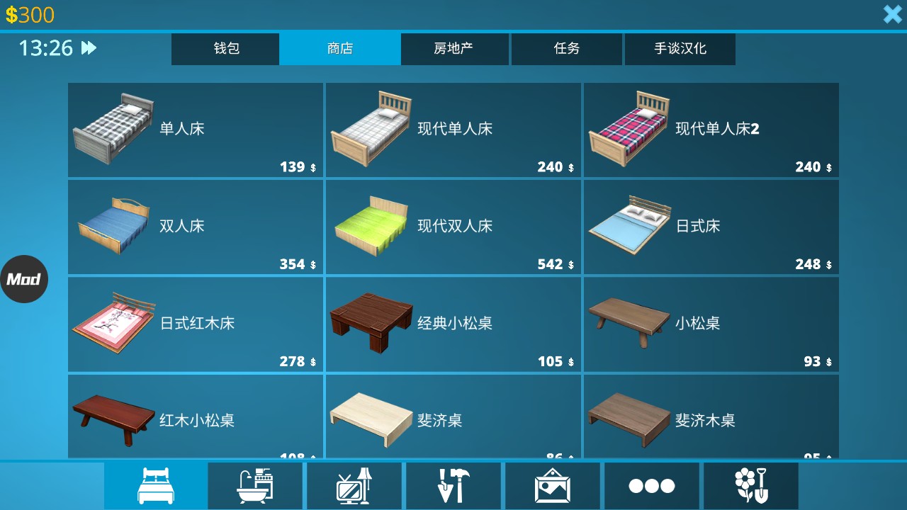 5、点击左下角的平板可以购买家具等装饰。