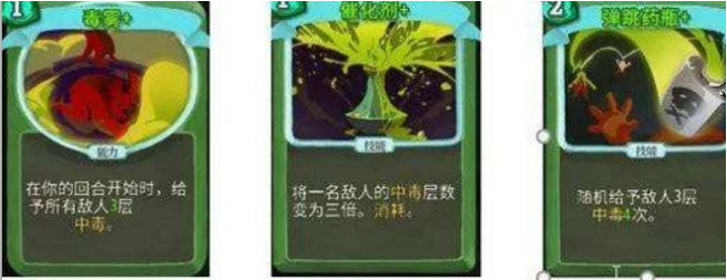 2.毒雾:没回合稳定对所以敌人提供三层中毒,稳定输出,有就拿。