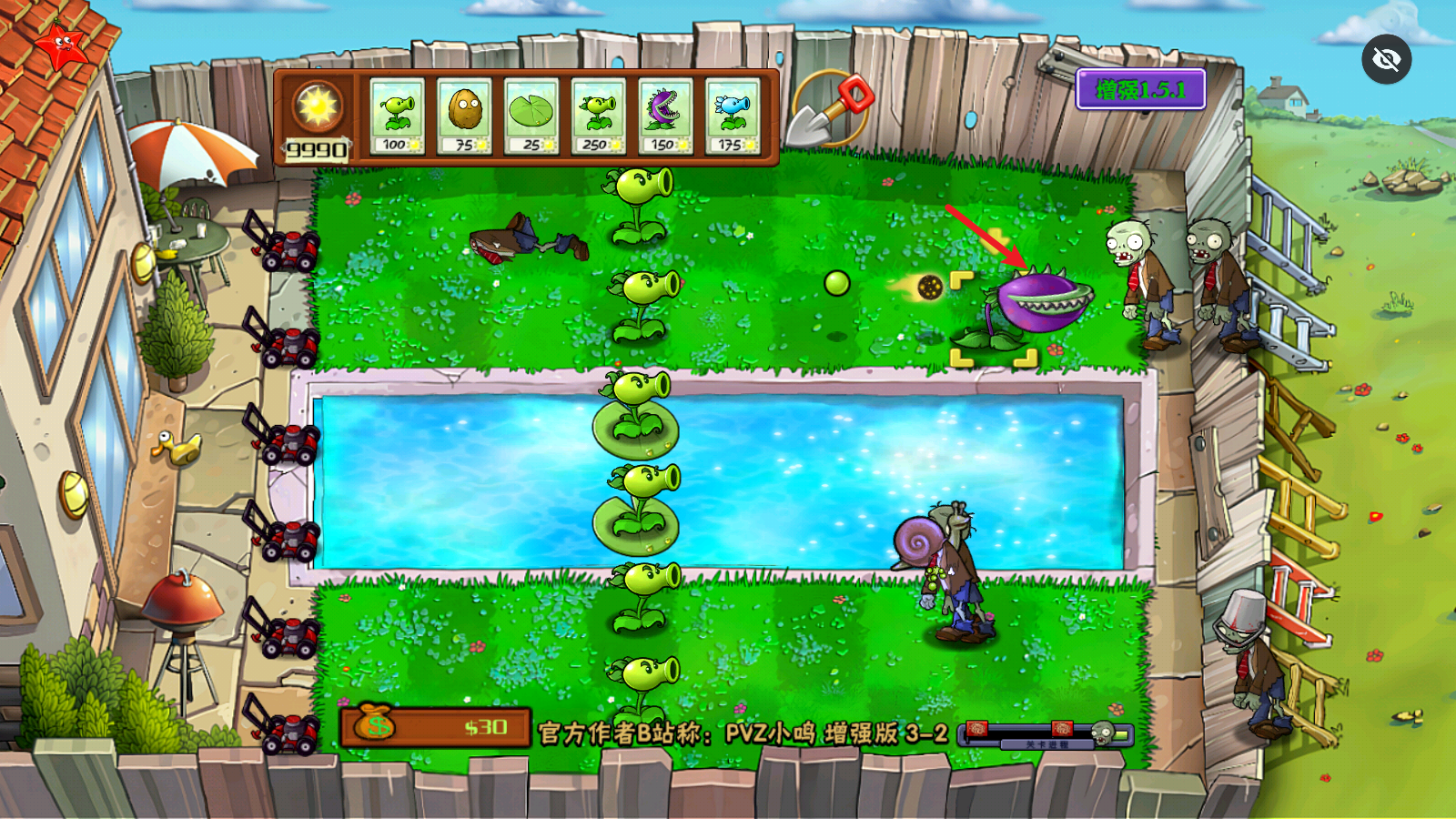 3. 增加了特殊天气系统,如雨天、大雾等,影响植物和僵尸的表现。