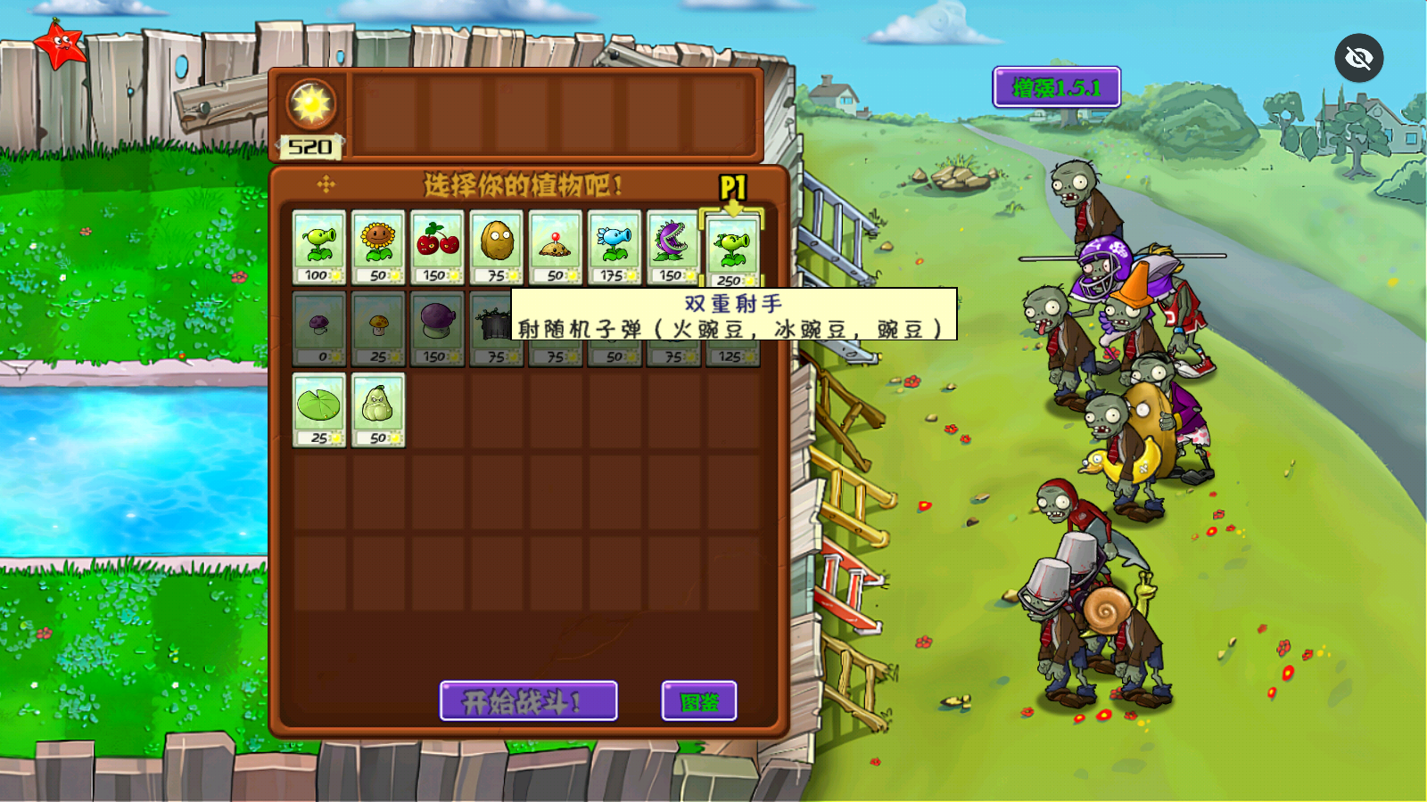 1、玩法上和原版一致,主要为大家讲解一下不同的植物功能。首先还是一样的选择好植物。