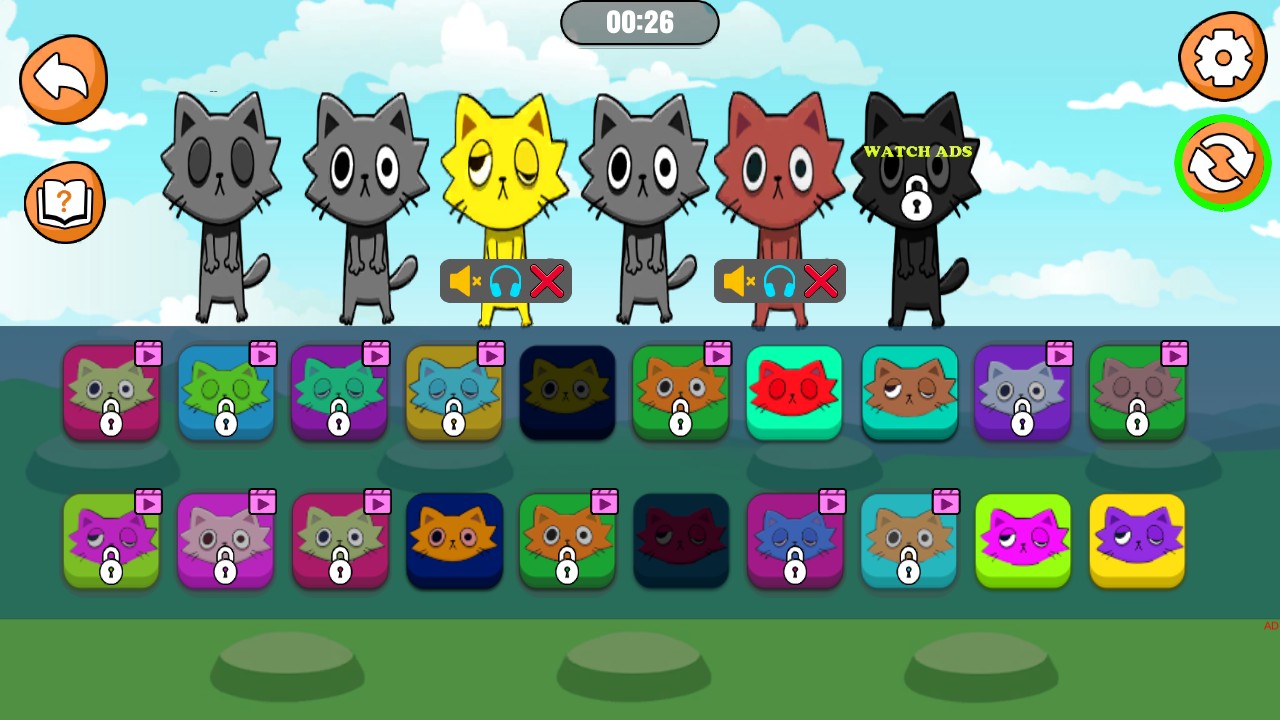 5、给猫咪都换上装饰后,他们就会演奏一首节奏。