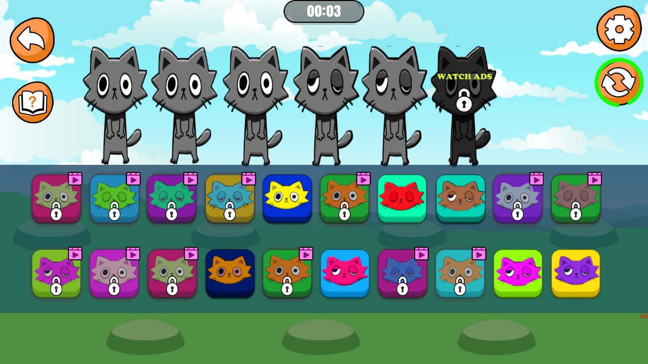 3、玩家可以将下面不同颜色给猫咪装饰上。