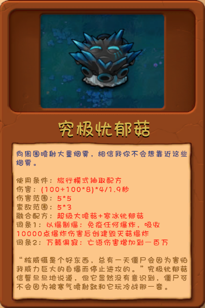7、究极忧郁菇:超级大喷菇+寒冰忧郁菇