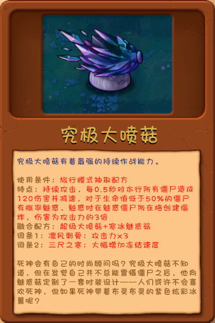 6、究极大喷菇:超级大喷菇+寒冰魅惑菇