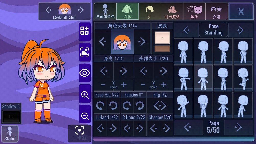 2、创造角色后,可以修改身体、头等形象属性,还可以给你的角色穿上时尚服装;