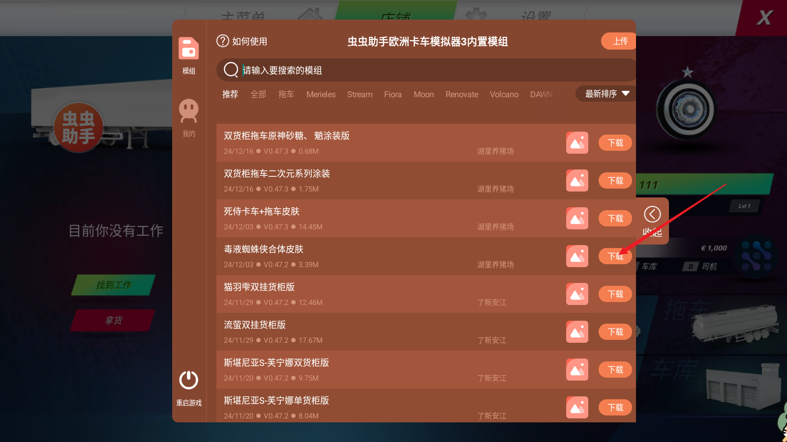 欧洲卡车模拟器3最新版本内置菜单怎么使用内置涂装