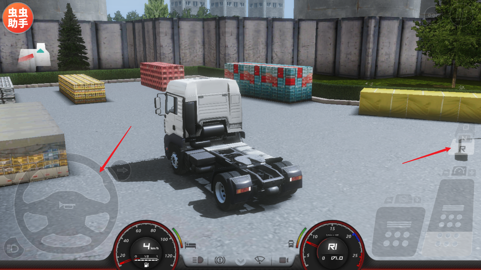 3、如果需要倒车则切换到R档即可,左侧的方向盘可以控制转向。