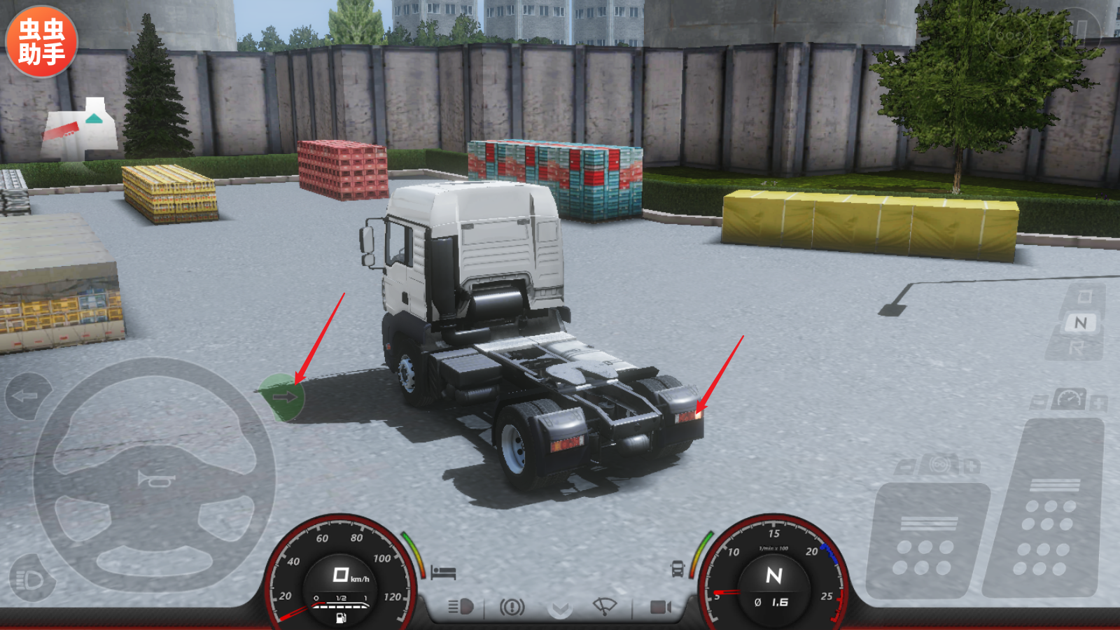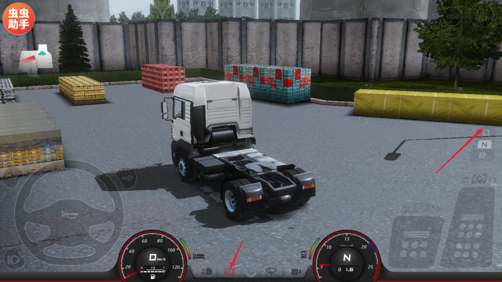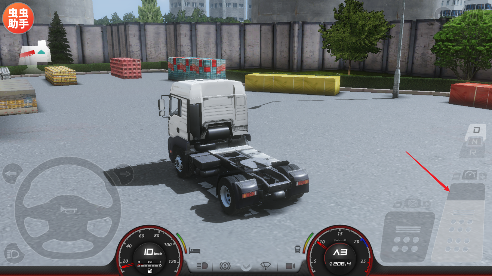 1、进入游戏之后,第一步点击下方的制动器,然后将右侧的档位切换到D档。