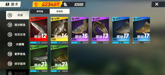 2. 丰富的鱼类图鉴,收录了全球各地的珍稀鱼类,玩家可以解锁并收集不同种类的鱼类。