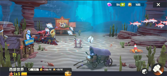 10、水族箱:水族箱解锁等级在20级,进入之后可以放入掉到的鱼,获取珍珠,珍珠用于建筑设施升级,水族箱可以领取金色鱼竿碎片,应该是每天可以领取10个碎片