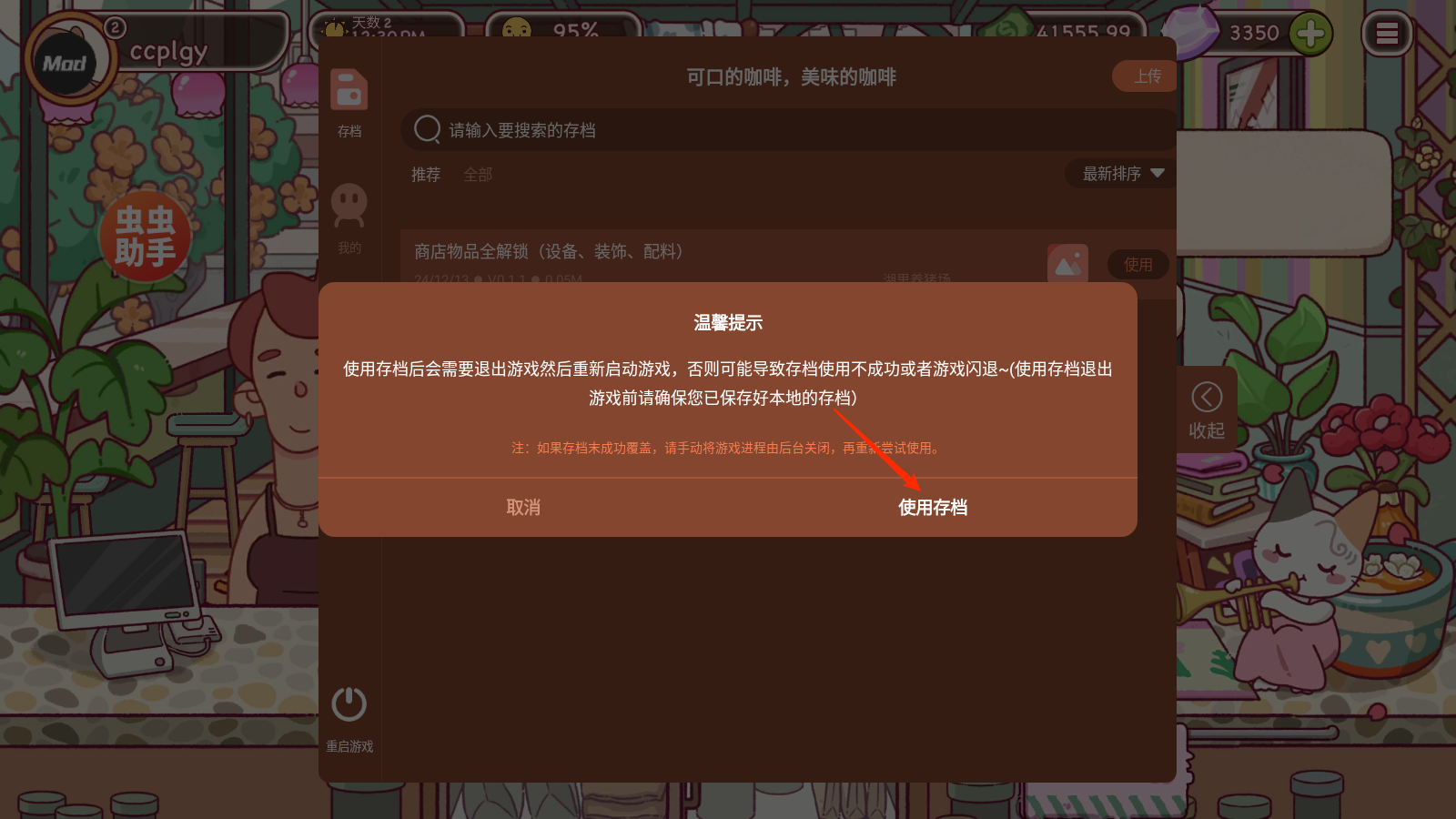 3、下载好之后点击使用,然后重新启动游戏即可。
