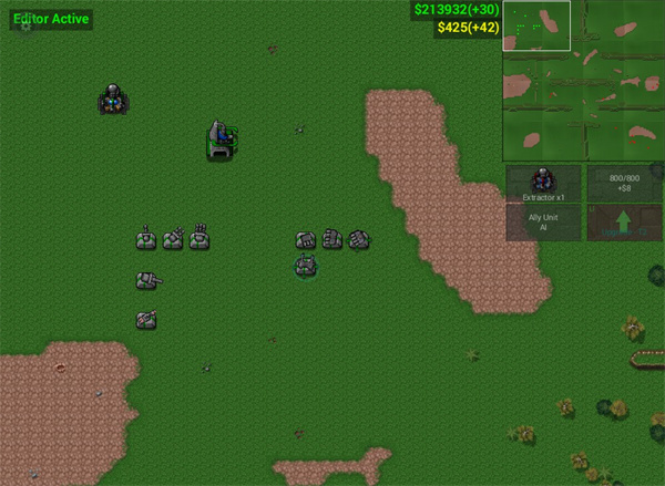 游戏最重要的是资金,我们现在只有少的可怜的资金,怎么办呢?当然是找一个黑漆漆的大坑,然后让建造车在上面建资金提取器,钱就开始源源而来了,可升级,建议初期就升。