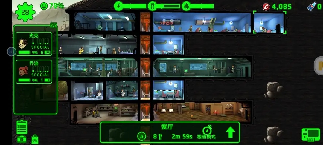 2. 管理居民的幸福度、健康值和生产力,维持避难所的平衡。