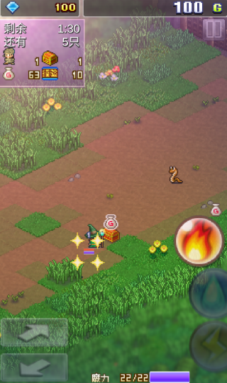 2、点击释放魔法技能,合理使用火球、冰冻等元素法术击败沿途怪物。