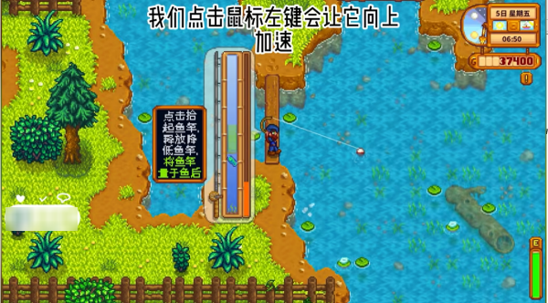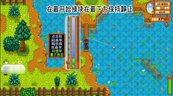 2、在出现了上钩了的提示后,就会出现一个指示条,这时候的绿块将会在最下方保持静止。
