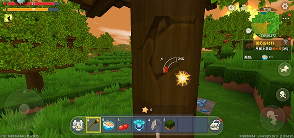 7、从树上获取细树枝,完成这个任务需要先来到树木旁边,通过砍树获取相应的细树枝;
