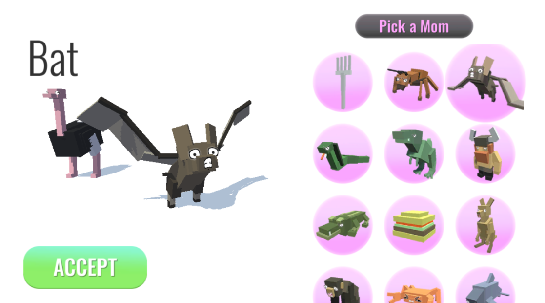 4、接下来选择母亲,我们这里选择蝙蝠作为母亲,同样点击accept。
