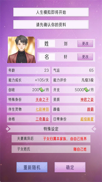 1、进入游戏后,首先需要设定角色的各种基本属性和资质。