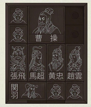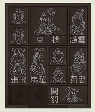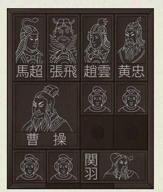 3、张右,中边兵下二,中兵左下,关左二,中兵上右,中边兵上二,张右。