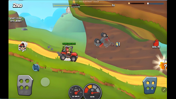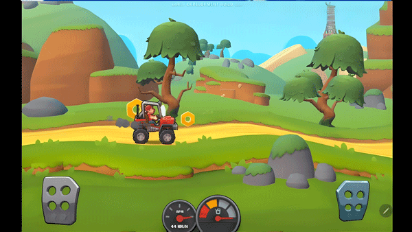 1. 玩家需要通过虚拟按键控制赛车的油门、刹车和平衡,在复杂地形中保持稳定。
