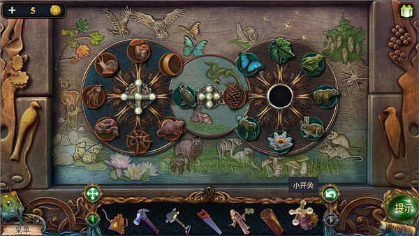 15、回到小屋,对5使用小开关开启小游戏(将动物和图案对应),完成后获得能量球。