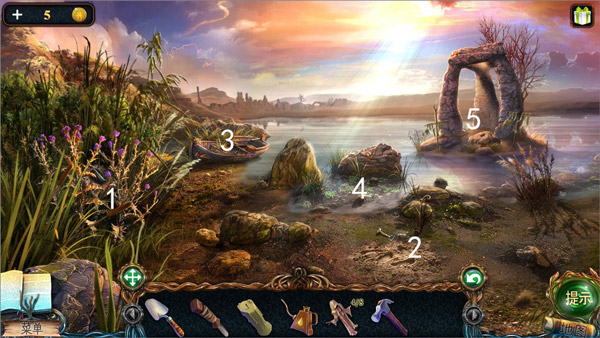 8、图中1处获得锤子;2处获得线索五个世界的堡垒,左入口到达生命之湖,点击人鱼触发剧情得到提示。