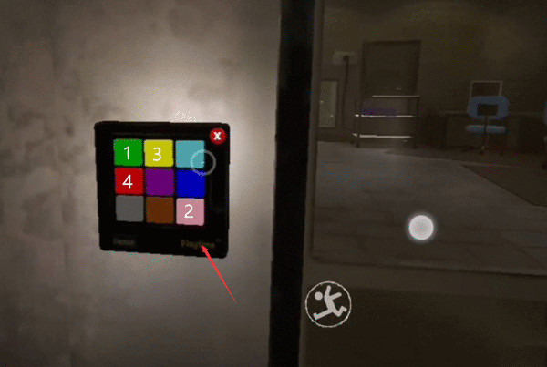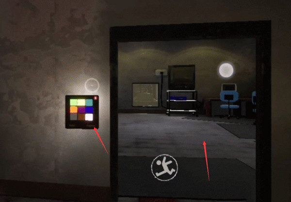 2、走到密码门前,按照绿粉黄红顺序按键;