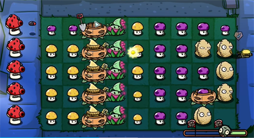 3、在蘑菇派对中,除小喷菇外的所有植物被消灭后都会变成小喷菇;