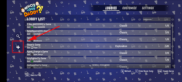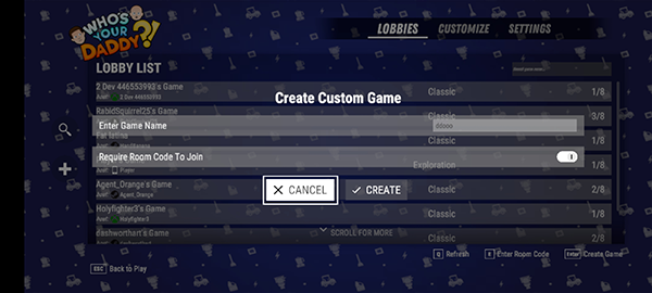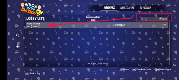 5、想要加入房间的玩家也可以在自定义模式下,搜索房间名称并进入游戏