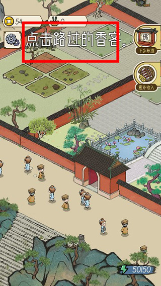 3、需要先点击路过的香客,把他们引入自己的寺庙;