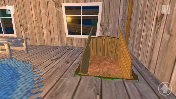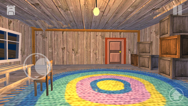 7、开始探索房间,发现楼顶的木板是碎的,可以利用背后的木箱子爬上去。