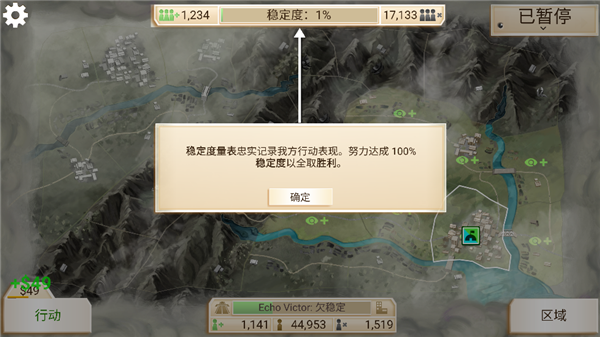 4、稳定度代记录我方行动表现,当达到百分百时,即是胜利的表现,