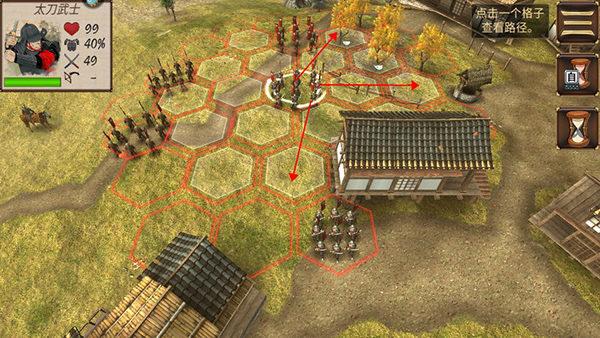 调整部队会消耗步数,玩家需要点击右边沙漏,进入敌方回合,等待敌方移动完之后,又能获得步数。慢慢移动到地方附近,等到可以攻击地方之后,直接选择地方部队进行进攻。