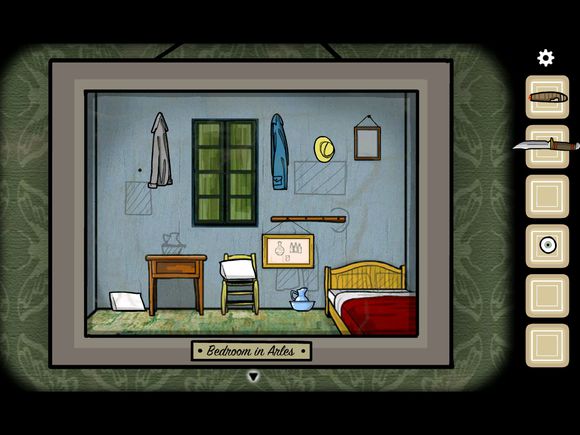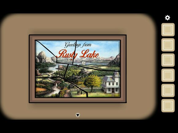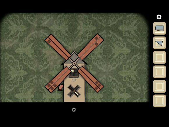 首先抽屉里有螺丝刀和一张纸片。用螺丝刀旋开门边的电灯开关,按图弄,开灯,拿到第二张。第三张在风车里,上面指示风车扇,下面指示要调到的位置,如此几次得到。第四张还是在盒子里,把方块调到相应位置即可。
