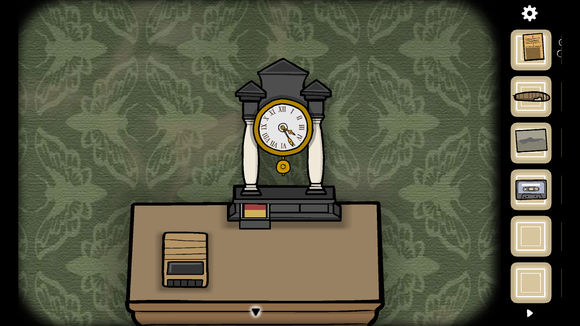 把钟旁边的纸拼好,翻到背面,得到频道945。电视调到945后得知烧画里的灵魂,在柜子上得到雪茄,烧画上的灵魂得到金钥匙,开橱柜的锁。
