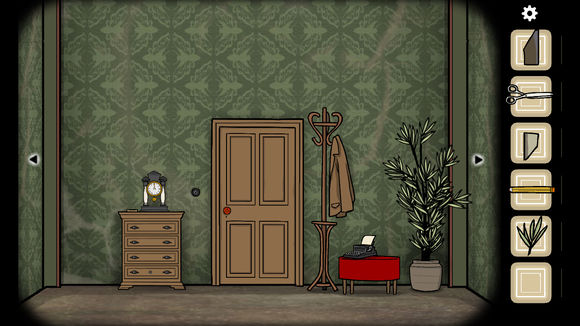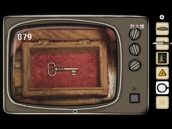 输入电话号14335(注意,这种老式电话要转到底才行。输入成功后左上会有号码提示)。随后电话提示去看钥匙孔。多点几次后一只大眼睛突然出现,吓人一跳。眼睛上有咱们熟悉的X和·符号,很明显提示的是钟的指针位置。(很奇怪为什么会有人卡在这里)