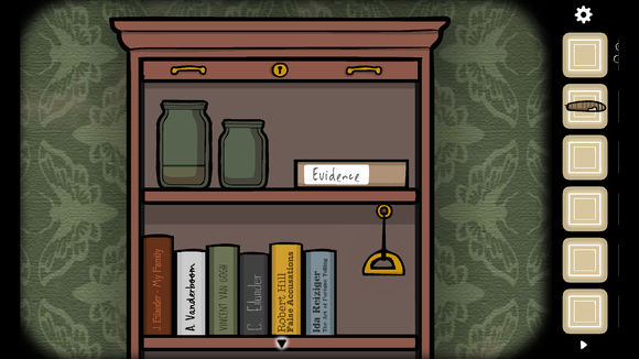书柜的一层摆了几本书,可以移动,很明显是要你按某种顺序排列。我们在抽屉中的档案中翻找,会发现有很多档案画着疑似书架的图案,按此解开书架谜题